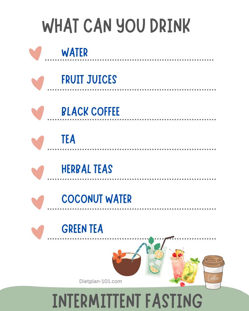 Yes, you can drink water while intermittent fasting during the fasting period. During the fast, you consume only water, coffee/tea, and other non-caloric beverages.