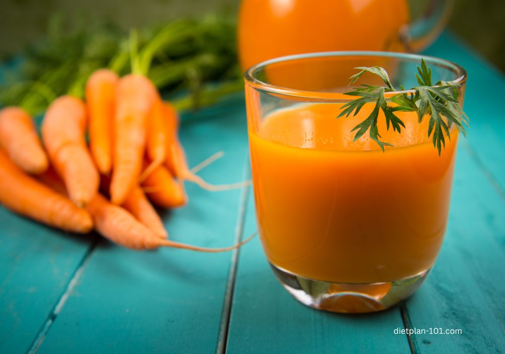 Carrots are well-known for their ability to improve vision, and drinking carrot juice can help maintain good eye health. The vitamin A and beta-carotene in carrot juice can also improve skin health, reduce inflammation, and promote collagen production.