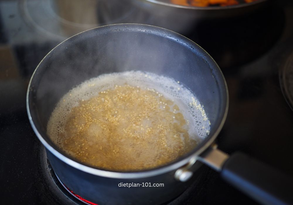 Start by making a basic quinoa bowl, and cook quinoa according to package instructions. The water to quinoa ratio is 2:1, or 2 cups of water for every 1 cup of dry quinoa.